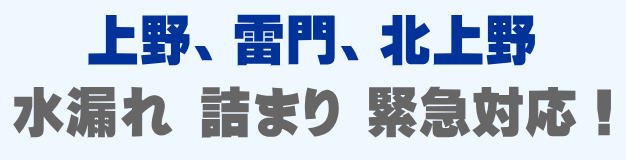 上野、雷門、北上野での水の困った即解決!急な水道トラブルに緊急でかけつけ訪問し、蛇口の水漏れ、トイレ詰まり、排水の溢れ、タンクの故障など修理いたします。